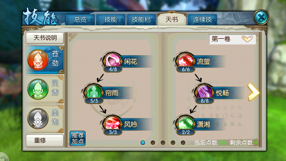 第二重技能的花絮飞扬、竹引清风、幽光、活络、坚韧都需要点满22级,这些技能提供了重要的输出、控制和抗性属性。血暖香繁作为核心保命技能可以适当加点,灵犀相通根据玩法决定,单挑可以少点,团战必须加满。记住要留些点数给第三重的关键技能,毕竟后面还有更重要的选择等着咱们。