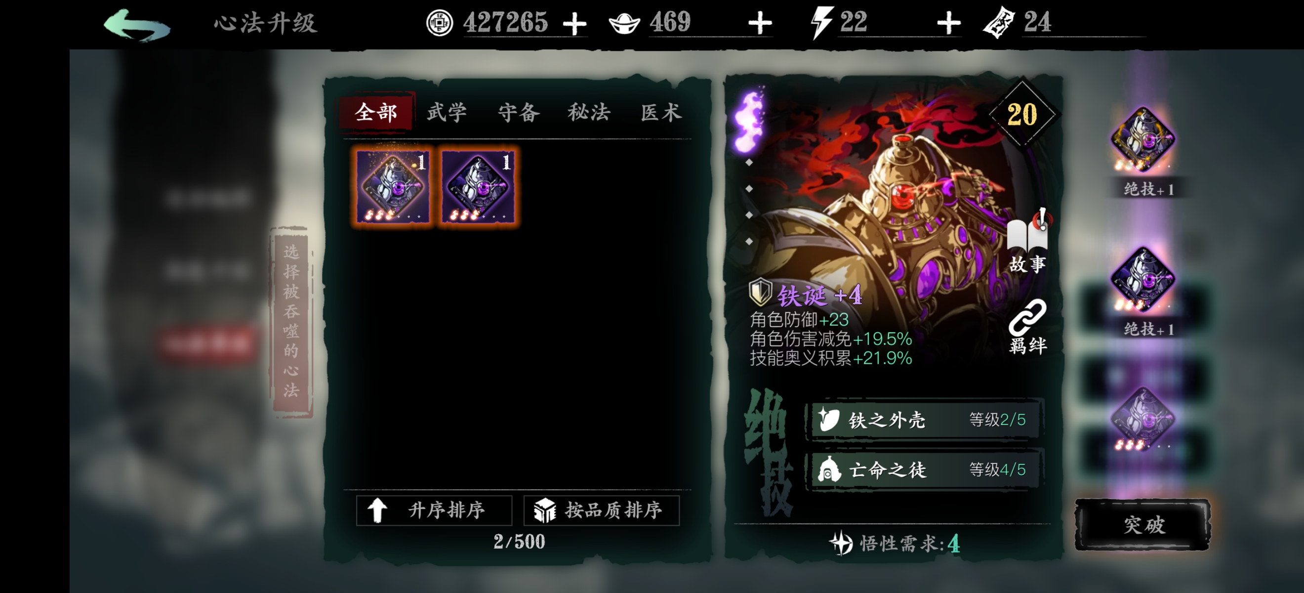 将普通心法升级为典藏版(珍藏版)主要通过两种核心途径实现:吞噬继承和织衣者转化。这两种方法都需要玩家积累特定资源,且涉及心法系统的深度养成机制。典藏版心法不仅拥有独特的金色卡面特效,其基础属性和绝技效果也显著优于普通版本,是后期战力提升的关键环节。