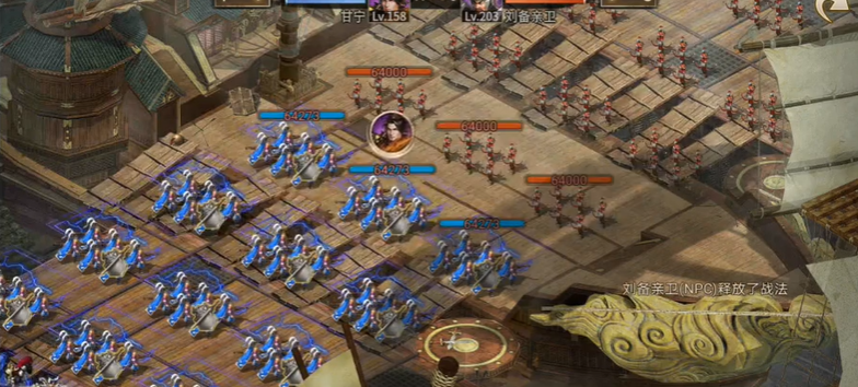 刘备亲卫是个挺特别的角色,虽然他没有主动技能,但你可别小看他。这家伙有个很烦人的特性,就是如果你对他用技能攻击,他会直接把技能反弹回来,所以打他的时候最好老老实实平砍,别想着放技能速战速决。他的兵器等级和宝石等级一般比较低,左边队伍通常是5级宝石和61级兵器,右边队伍则是20级兵器,整体难度不算太高,但得注意打法。