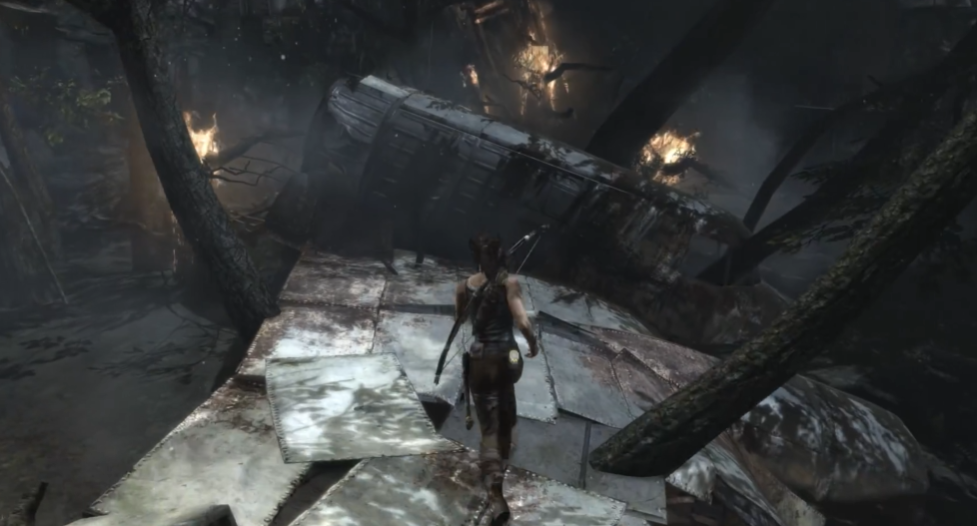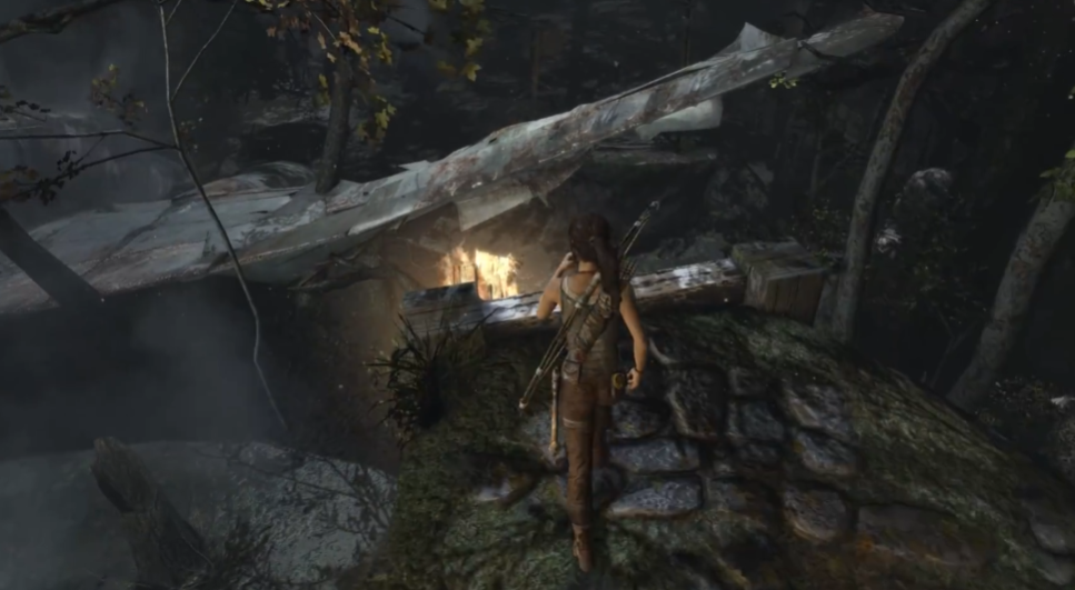 点燃木板后,耐心等待火焰烧毁支撑结构。残骸会因失去平衡而部分坍塌,这时就能靠近并攀爬上去。如果残骸没有完全落下,可以尝试从侧面寻找可攀附的岩石或树枝,借助它们跳到残骸上。注意控制跳跃时机,避免因距离判断失误而掉落。