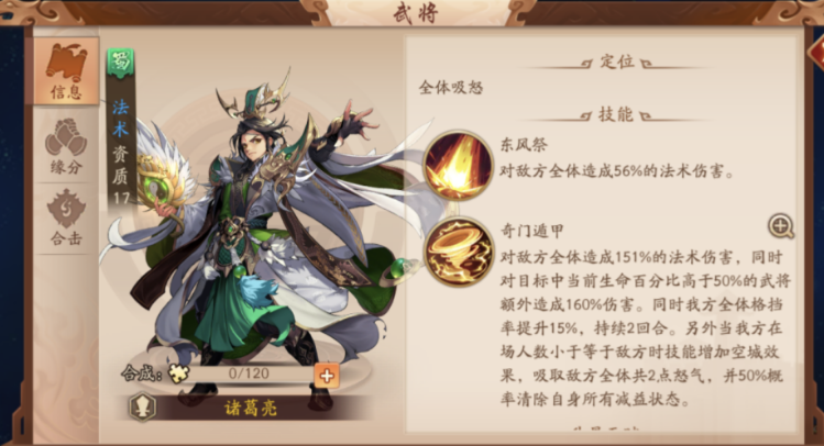 姜维的技能组合使其在阵容中定位独特。挑衅效果可强制敌人攻击自身,有效保护后排脆皮武将,同时配合反击机制实现额外行动,普攻或怒气技能均可触发。紫金姜维的列技能能对一列敌人造成物理伤害并吸取攻击力,生命值越低伤害加成越高,需合理控制血量以最大化输出。搭配诸葛亮可激活24%攻击加成缘分,与刘备或郭嘉组合则提升生存能力,建议根据队伍需求选择羁绊。