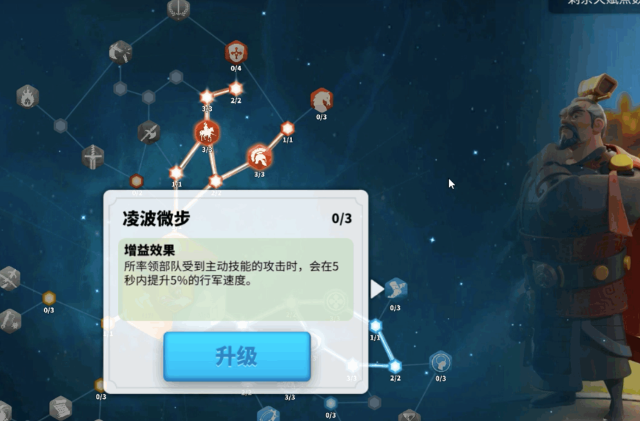 例如打野时主将携带洛哈可提升70%经验获取效率,配合经验符文快速升级。橙色统领达到10级后需卡星级,优先将1技能升至5级再升星,避免浪费碎片。觉醒后的橙将质变明显,如埃及艳后觉醒后采集效率大幅提升,但需消耗大量通用金头,建议优先用于核心战斗统领。联盟科技中的统帅招募可提升酒馆出橙概率,加入高活跃联盟能更快解锁相关加成。