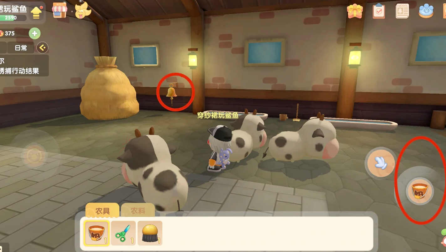 饲料需通过商店购买牧草或种植萤火草获取,每日需定时投喂。若将奶牛放置在玉米地,可自动消耗玉米成长,但需注意雨天需召回屋内避免生病。使用毛刷互动可提升好感度,好感度不足会导致成长停滞。挤奶前需确认奶牛状态为可生产,并提前购买挤奶桶工具,靠近奶牛点击交互按钮即可完成操作。