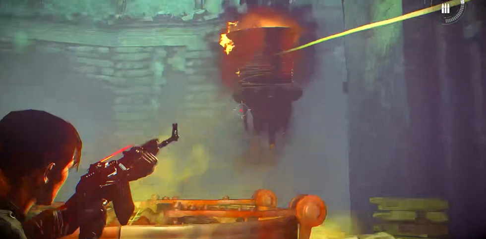 战斗开始后需优先清除场地内的小怪,这些敌人会持续干扰绳箭操作。女巫本体悬浮于空中篮筐内,主要攻击方式为投掷火球,其弹道速度较慢但伤害较高,可通过侧向翻滚躲避。场地两侧各有一台冒黄烟的转轴装置,使用绳箭将女巫篮筐与转轴连接后,需立即前往拉杆处待命。当女巫被拉至矿井正上方时,要迅速射击其篮筐阻止她切断绳索,并立即扳动拉杆引爆炸药。此阶段需注意第二处拉杆距离较远,需提前移动至合适位置。