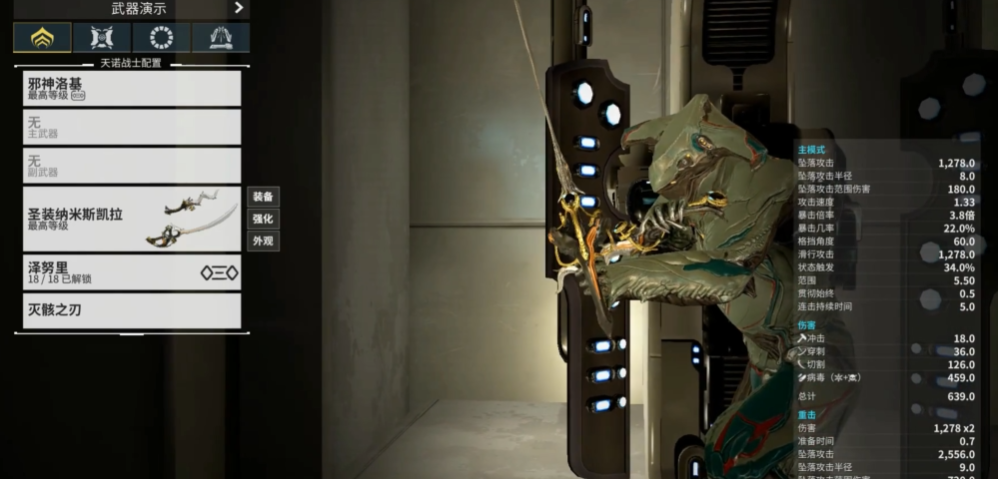 近战武器因其独特的战斗风格和高效的输出能力成为许多玩家的首选。圣装近战武器凭借其强大的威力和特殊效果尤为突出,例如圣装帕里塞斯长剑,其基础伤害和挥砍速度表现出色,且随着使用者段位提升能进一步强化属性。这类武器通常需要搭配合理的Mod配置,例如提升暴击率或攻击速度的Mod,以最大化战斗效能。