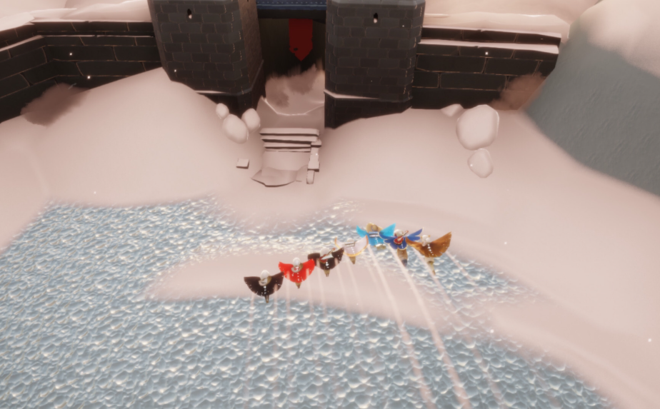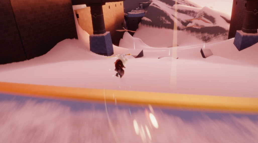 滑到中途会有一个分叉路口,左边是常规赛道,右边则通往隐藏区域。如果想快速通过,建议走左边,路线更直且障碍较少。如果打算探索,可以试试右边,那里有额外的季节蜡烛和小金人。滑行时别太着急,适当减速能更稳地通过弯道。遇到陡坡时稍微抬起方向,能避免失控摔跤。