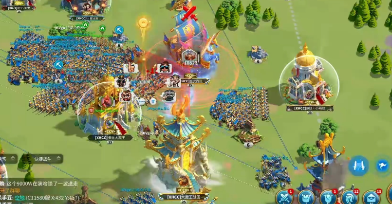 打的时候一定要注意控制好buff队的血量,千万别让它们被野蛮人打死,因为每消灭一支部队圣城就会回血。周围准备补集结的小伙伴们也要帮忙清理突然刷出来的小怪,这些小怪同样会给圣城回血增加难度。最好提前和盟友商量好,分几波人专门负责拦截小怪,其他人专注补集结,这样效率会高很多。
