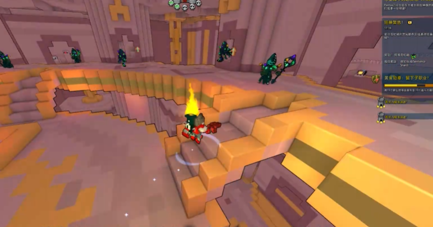 对抗近战BOSS时,利用爆炸跳保持空中输出节奏,触发被动后立即释放蓄能射击。遭遇远程攻击型敌人时,可通过建造2X2或3X3的方块掩体规避弹道,从侧面进行安全输出。永恒竞技场和暗影塔等特殊副本禁用建造功能,需依赖走位与技能闪避。终极技能毁灭之雨应在敌人聚集时释放,配合攻速药水可短时间内造成巨额范围伤害。