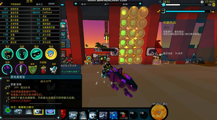 时空术士宠物提供20%魔法伤害加成与25%冷却缩减,星光龙宝宝可作为备选。坐骑优先制作星光龙,其究极形态永久增加魔法伤害与魔寻率,后续可补充骸骨龙(暴击伤害)和冰龙(暴击几率)。药水选择精力小瓶实现暴击回血,徽章搭配吸血与秘法组合,前者提供生存保障,后者增强爆发输出。副职业推荐银月枪兵,变身状态可显著提升攻速。