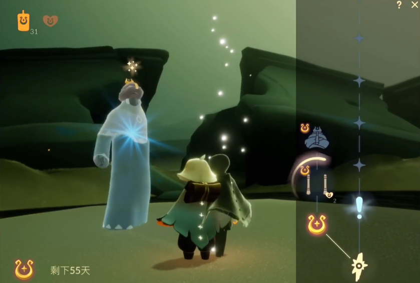 除了魔法,完成六个先祖任务会奖励爱心,这是兑换特定装扮的关键货币。每完成一个任务,向导先祖会解锁新的剧情动画,逐步揭示方舟背后的故事。记得按顺序完成,否则无法触发后续任务。最后一个火之灵任务在雨林栈桥图,橙色光芒需要耐心等待它飞近才能收集。