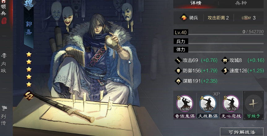 郭嘉同样是谋士定位,所以加点也要围绕着智力为主,加点时优先把智力属性拉满,这能最大化他的法术爆发能力,在战场上郭嘉的技能往往有强力的控制或debuff效果,高智力让这些效果更持久和强力,剩余点数可以考虑加一点到敏捷或防御上,提高他的生存能力避免被秒杀,建议你加点时保持专注别分散投资,郭嘉的加点要确保他能持续输出不要轻易倒下。
