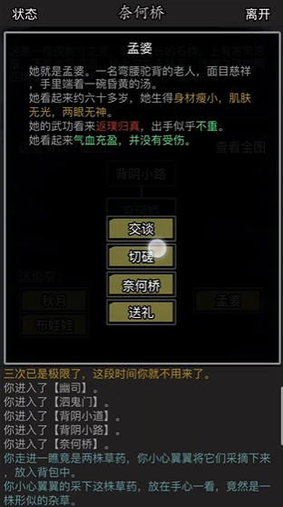 进入阴间前必须通过幽灵检查,确保角色没有活人气息。可在NPC处购买闭息工具伪装成亡魂,否则会被拒之门外。初次进入会强制接取护送祭品任务,完成后才能自由探索。若不愿做任务,也可直接与守门鬼使战斗,死亡后仍能进入但会损失部分资源。阴间分为上阴城和下阴城,击杀两城BOSS王柳枝获取夜游令牌并合成,才能解锁全图自由通行。