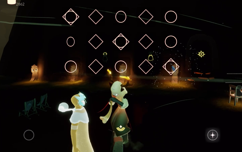 吹出完整的曲子,除了自己摸索,游戏里其实也提供了现成的乐谱。不过你得先有喇叭这个乐器本身,才能去兑换和它配套的乐谱。乐谱通常也在各个地图的先祖那里用爱心兑换,价格从1颗到5颗爱心不等。兑换到之后,你在演奏界面就能选择已拥有的乐谱,屏幕上会显示一些星星或方块的图案来提示你该按哪个键、什么时候按,跟着提示走就能演奏出旋律了。