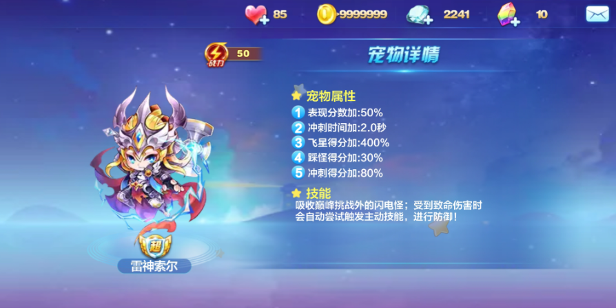 除了坐骑本身,整体配置也需要同步考量。宠物选择上,苏萨努或雷神索尔这类拥有复活机制的选项,可以大幅提升容错率。精灵方面,战熊或毁灭之熊能在超级奖励关口中引爆分数,而宝物的选择更是关键,红玉冠和轩辕神剑作为专属装备必不可少,其余槽位可以根据个人偏好搭配甜粉、潮蓝或加速充能的宝物。这样的组合能确保轩辕在障碍密集区域依然保持稳定输出。