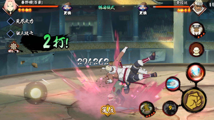 操作樱花跃时要注意滑动速度和方法,快速点击可能失败,因此从技能图标拖到普攻键的滑动方式更可靠。一技能樱花抱是向前突进抓取敌人,命中后可进行抱摔;二技能樱花冲是聚集查克拉向前强力一击。使用任一技能后接普攻即可触发樱花跃,它在空中遇到敌人时会抓住并砸向地面。熟练这个操作需要练习,尤其是滑动轨迹的流畅性,以确保在实战中能稳定触发百豪模式。