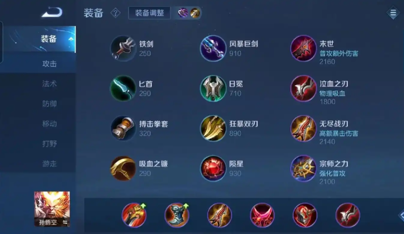 出装顺序需要优先考虑暴击装备和物理穿透,起始装备通常为追击刀锋和急速战靴以加快清野速度和攻击频率,核心装备包括无尽战刃和宗师之力来最大化暴击伤害,后期可选择碎星锤应对高护甲目标,并搭配破军或名刀来增强收割能力或保命效果。