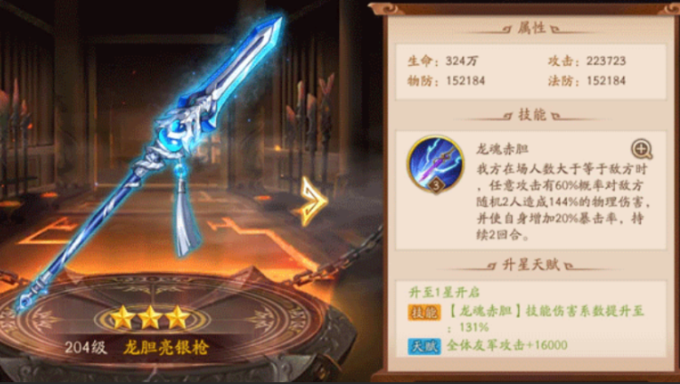 神兵和装备的合理搭配能显著增强武将的战斗能力,输出型武将应配备提升攻击力和暴击率的神兵如龙胆亮银枪,治疗和辅助武将则适合使用增加生存或技能效果的神兵如苍叶绿绮琴。装备强化需针对武将定位,优先升级核心输出的武器和防具以最大化战力,同时注意激活装备的缘分效果来强化属性加成。红色神兵如火云剑和雌雄双股剑能提供额外增益,应根据阵容需求灵活选择。
