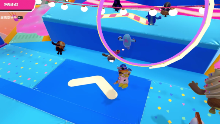 落地时的处理也很讲究,从秋千跳下时要迅速做出翻滚动作来缓冲冲击力,这样可以有效防止糖豆人摔倒,保持动作的连贯性,避免因为落地不稳而耽误后续行进,这种小细节往往能决定你是否能及时到达终点。在多人游戏环节里玩这个关卡时,你得学会避开那些人群扎堆的地方,特别是狭窄的平台区域,很容易因为其他玩家的推挤而掉下去,所以尽量选择人少的路线走,或者优先占据秋千的起点和终点位置,这样可以减少在空中调整方向的麻烦,也能降低被干扰的风险。