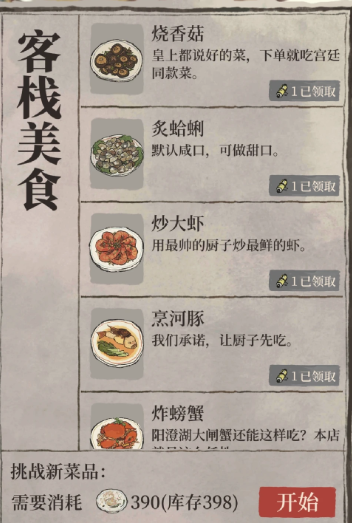 玩家首先需要确保客栈已经建造完成,这是制作烧香菇的前提条件。客栈是游戏中的一种功能性建筑,玩家可以通过兴造建筑选项来开设它,之后客栈会自动提供初始菜品烧香菇。开设客栈后,玩家可以接待来访的客人,这些客人会提出各种材料需求,比如棉花、菜肴或布料,满足他们的要求后玩家就能获得随机香料作为回报。