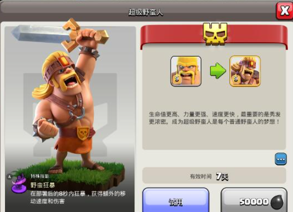 觉醒武器如巨人之锤和英雄之怒是游戏中的特殊物品,能在关键时刻改变战局。巨人之锤能显著提升攻城武器的攻击力,而英雄之怒能增强英雄单位的杀伤力和耐久性。超级兵种如超级野蛮人和超级哥布林通过特定方式解锁,拥有更强的属性和独特能力。超级野蛮人攻击速度更快,超级哥布林掠夺资源效率更高。这些武器通常有冷却时间或资源成本,需要玩家在战斗中谨慎使用以最大化效果,避免在非关键阶段浪费。