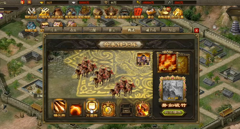 阵法系统作为核心玩法之一,能显著提升部队的攻防能力和战术灵活性。玩家需要先将角色等级升至210级,并成功攻克对应的副本挑战,才能激活阵法科技。首次开启时,系统会提供锋矢阵、雁形阵和方圆阵三种基础阵法选择,但初始状态下每个阵法只开放三个位置,若想全部解锁,需为每个位置支付150金币,总计450金币。建议在年终庆典或消费活动期间进行解锁,这样可以额外获取资源奖励,提高性价比。
