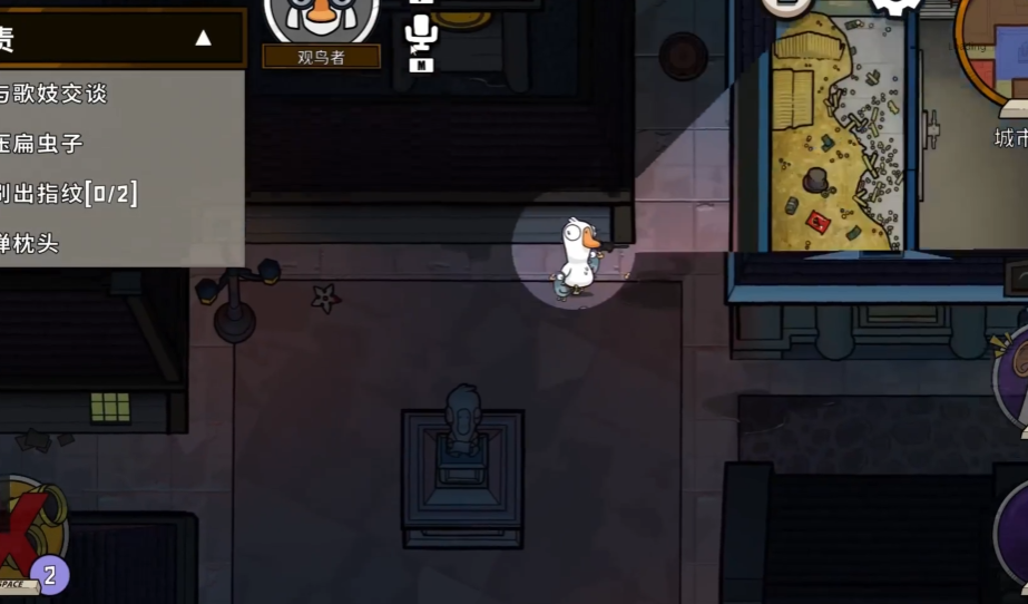 在游戏开局阶段,观鸟者不建议独自行动。较为稳妥的策略是优先寻找可信赖的队友组成小队,跟随大部队一起行动并完成系统分配的任务。这样做不仅能有效提升自身安全性,减少被伪装成鹅的鸭子单独刺杀的风险,也能避免因落单被杀而无法留下任何有效信息。跟随团队并不意味着被动,你需要在这个过程中留意其他玩家的行为举止。进入游戏中期后,可以根据局势调整策略,如果发现某位玩家行为异常,如频繁尾随他人或无故停止任务,便可以转为独立监控模式。
