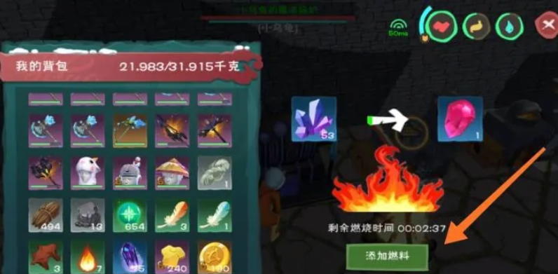 走到你放置好的魔法熔炉旁边,点击交互键打开它的操作界面。操作的第一步是添加足够的燃料,木材、煤炭或者茅草都可以作为燃料,燃料的品质不会影响最终结果,但一定要放够量,如果燃料中途烧完了,熔炼过程就会中断,白白浪费矿石和时间。添加好燃料后,把背包里的水晶矿石放入熔炉的材料格子里,确认材料都放好了,点击开始熔炼的按钮,系统就会自动开始工作,你需要等待一段时间。
