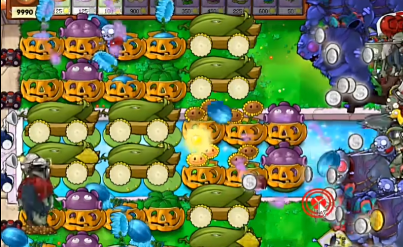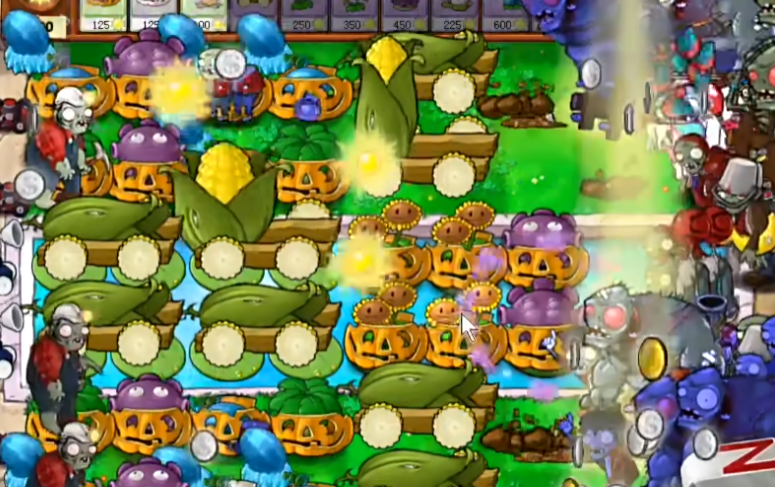你需要掌握玉米加农炮的发射循环,即所谓的P4节奏。在较为精准的节奏下,伴舞僵尸啃食玉米炮的事件会很少发生,因此阵型中只保留一株双子向日葵来生产阳光,经济也是完全足够的,但前提是你不频繁地更换玉米炮。游戏中要时刻注意用新的南瓜头替换出现裂缝的旧南瓜头,保护好忧郁蘑菇和玉米炮等核心植物。对于玩偶匣僵尸的自爆要格外留意,它可能炸毁水池里的忧郁蘑菇,需要及时补种。