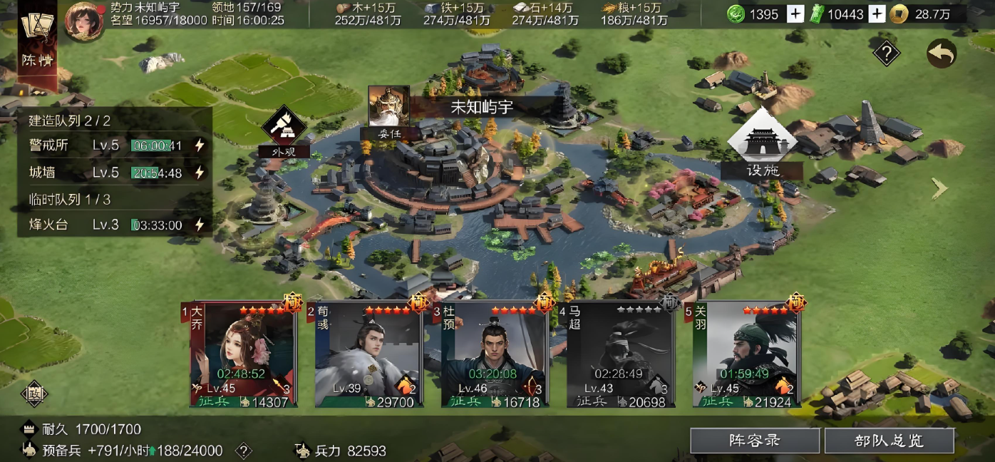 开荒时先用骑兵侦查土地守军阵容,针对性派克制兵种出战。遇到平局时及时撤退保留伤兵,利用预备役快速补员。新手期体力消耗减半,抓住这段时间多打二级地练级,等武将觉醒后再挑战四级地。同盟资源互助功能可以请求紧缺物资,但每天次数有限要合理使用。城主府等级决定其他建筑上限,前期跟着任务走避免卡资源。封禅台能额外提升COST值让队伍配置更强力武将,但需要兵营10级后才能建造。