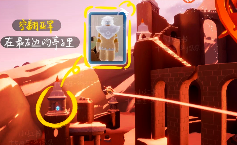 共有七个先祖需要玩家寻找并解锁。第一个先祖位于入口广场的右侧石阶上,玩家只需朝大门右手边飞行即可发现,这是一个提供站姿动作的先祖。第二个先祖隐藏在滑行赛道的亭子中间,表现为一道蓝色光束,靠近后跟随其指引即可解锁。第三个先祖需前往飞行赛道,在加速门后的建筑左侧栏杆处可见。第四个先祖位于赛道终点观众席的右侧高台,通常以金色光芒标记未解锁状态。