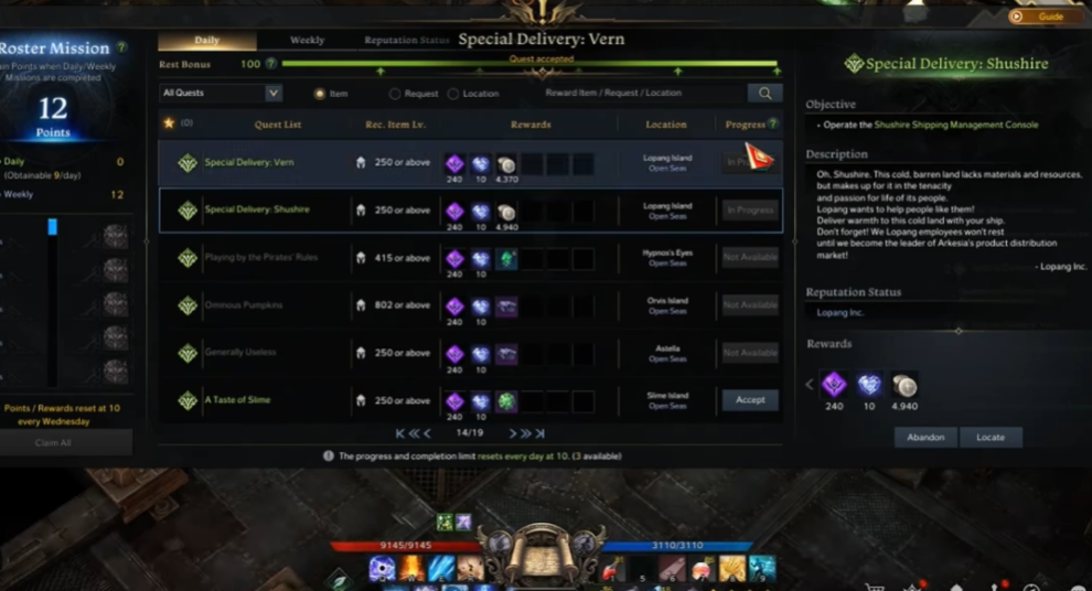 快递岛任务(洛邦岛任务)的开启需要完成前置条件并触发特定流程。首先需确保角色等级达到50级,并完成当前大陆或岛屿的支线任务链。该任务属于每日委托类型,每日最多可完成3次,通过快捷键Alt+J可呼出任务面板查看可接取任务。若面板未显示快递岛任务,说明前置剧情任务未完成,需优先推进主线至贝隆大陆右下角的洛邦岛区域。