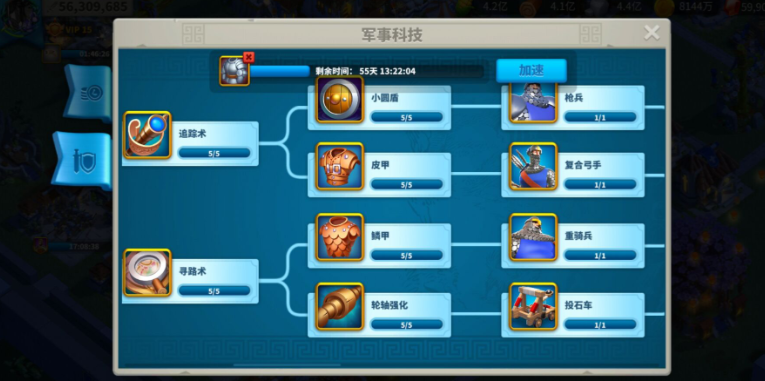 步兵科技应优先升级防御与生命值属性,增强其抗伤能力。骑兵科技可选择性提升移动速度,但不必投入过多资源。弓兵科技重点强化输出,但需谨慎分配加速道具。装备方面,步兵优先选择增加防御的套装,弓兵侧重攻击加成,骑兵装备可适当忽略。搬砖账号的科技与装备应以实用为主,避免追求高阶属性浪费资源。