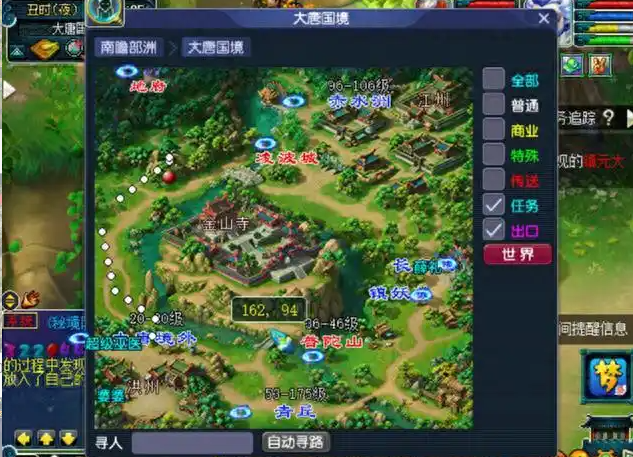 玩家可以通过点击游戏界面上的小地图调出大地图,在大地图上直接查看当前所
