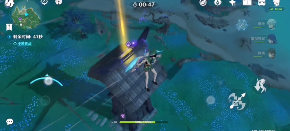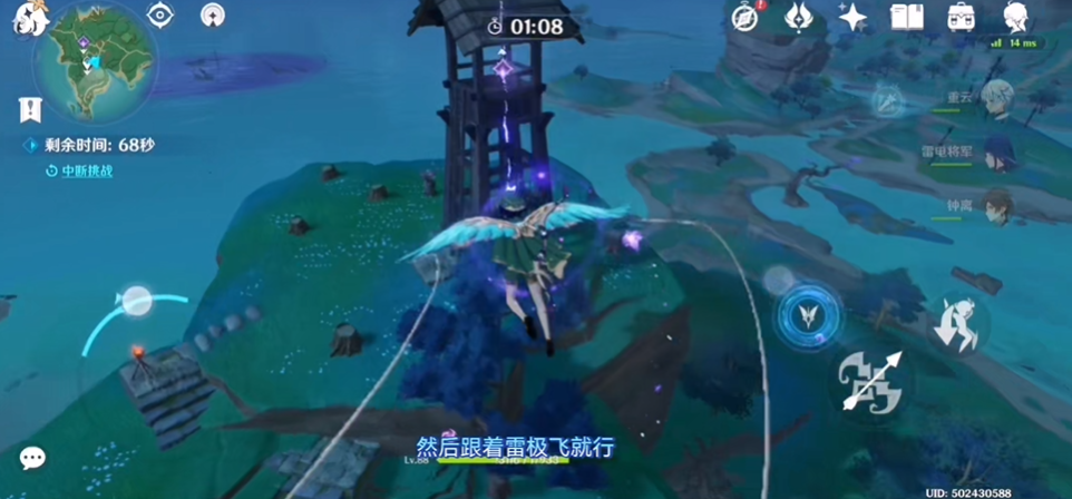 完成九条阵屋的电压冲锋任务,首先得找到任务触发点。传送到九条阵屋的传送锚点,往悬崖方向走就能看到圆形挑战平台。站上去开启挑战后,系统会提示需要利用雷种子快速飞行到终点。这时候要注意观察空中出现的黄色光线,那就是飞行路线指引。