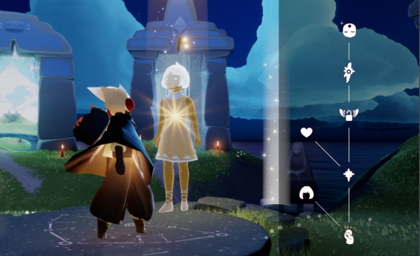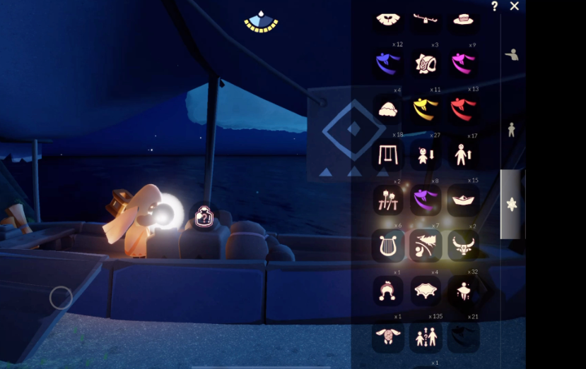 玩家需从遇境进入雨林传送门,穿过云层下的密集树干区域,找到被石门封锁的山洞入口。点火开启石门后,沿河流直行至小桥右拐进入山洞内部,跟随纸船指引即可发现发光的捉迷藏先祖。完成先祖任务后返回遇境星盘,消耗20颗爱心和3根升华蜡烛即可兑换该面具。雨林地图持续降雨会消耗烛光,建议在树荫或蘑菇下间歇性停留恢复能量。