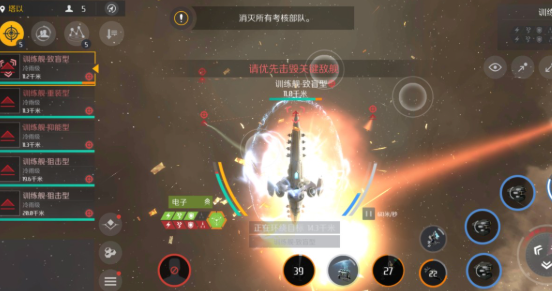 驱逐舰5考核是不少小伙伴在游戏里遇到的第一个硬骨头,这关需要面对一支由五种不同特性的敌舰组成的战术小队,包括致盲型、制动型、抑能型、重装型和狙击型。关键点在于优先解决后排的抑能和致盲敌舰,同时利用射程优势放风筝。建议装备远程武器如狙击2联激光炮或磁轨炮,搭配护盾发生器、能量回充器和离子推进器,确保生存和机动性。