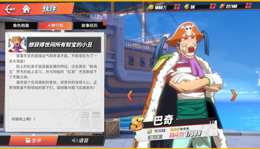 路飞和佐罗作为强势级角色的代表,整体表现非常均衡。路飞的连击能力和位移技能让他成为突破防线的利器,佐罗则凭借多变的技能组合适应各种战斗场景。这两位角色操作手感流畅,技能还原度高,特别适合追求连招快感的玩家。虽然输出略逊于超凡级,但培养成本相对较低,中期就能形成稳定战斗力。