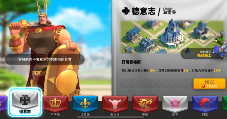 骑兵作为机动性最强的T4兵种,在扫田、游击和快速支援方面具有不可替代性。德意志文明提供的训练加速与骑兵攻击加成,能显著提升骑兵体系的成型速度。骑兵单位对黄金资源的需求较高,但凭借其高爆发伤害和战术灵活性,仍是许多活跃联盟优先培养的兵种。需骑兵防御属性较弱,需搭配具有减伤技能的统帅弥补短板。