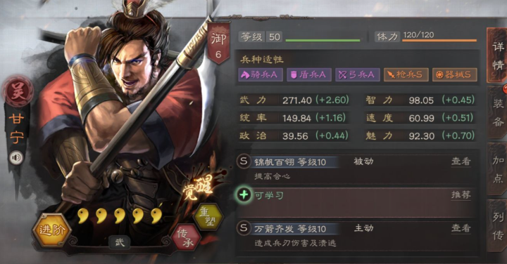 如果手里只有一个甘宁,建议慎重考虑是否兑换,毕竟甘宁本身也是强力的输出武将,拆掉可能会影响其他阵容的组建。锦帆军更适合已经有多余甘宁或者主打物理弓兵队的伙伴。它的强度中规中矩,不算顶尖但绝对能用,尤其是在对抗枪兵时表现不错,遇到盾兵就得小心了。