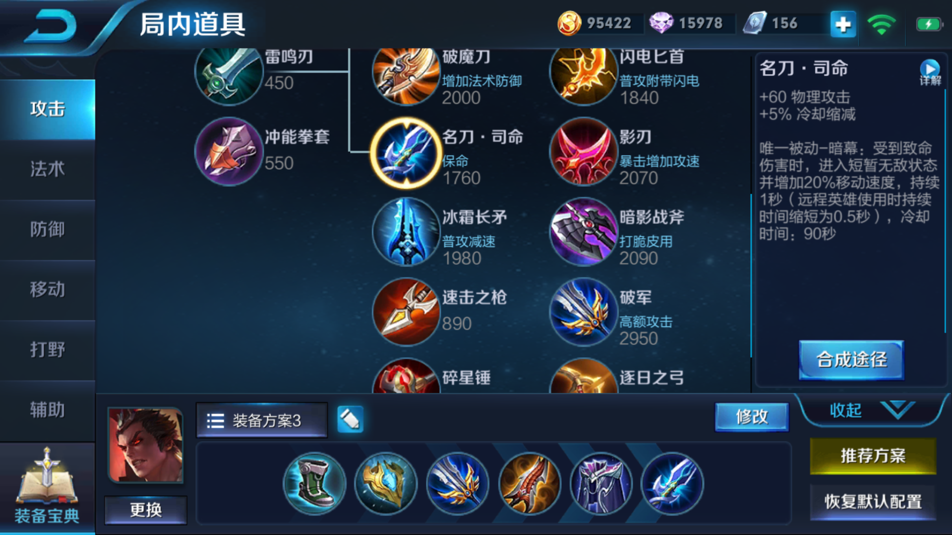 到了中后期,吕布的出装需要进一步补强伤害或功能性。纯净苍穹是当前版本吕布的热门选择,它不仅提供攻击力、冷却缩减和暴击率,其主动技能的减伤效果可以在吕布大招进场时开启,极大提高生存概率,避免落地成盒。如果追求极致的普攻输出和暴击效果,无尽战刃配合吕布附魔后的真实伤害能打出毁天灭地的效果,而影刃或闪电匕首则能显著提升攻击速度,让附魔状态下的方天画戟挥舞得更快,打出更多次附魔普攻。最后一件装备通常根据战局灵活选择,名刀·司命或贤者的庇护能提供关键的保命机会,血魔之怒则在残血时提供护盾并增加攻击力,适合绝地反击。