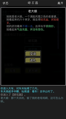 进入华山村后,玩家会首先在碎石路遇到一位老大娘,由此开启本章的主线任务。你需要前往小巷尽头,通过切磋制服那里的流氓和地痞,并从他们身上获得钱袋。将此钱袋作为礼物送回给碎石路的老大娘后,任务线会引导你前往西村口与王小二切磋,接着进入前厅战胜拦路的壮汉以打开内室的门,最终在内室中击败王铁手,便可完成主线并获得包括350点潜能和1点阅历在内的奖励。整个流程紧凑,是熟悉游戏战斗与任务逻辑的好机会。