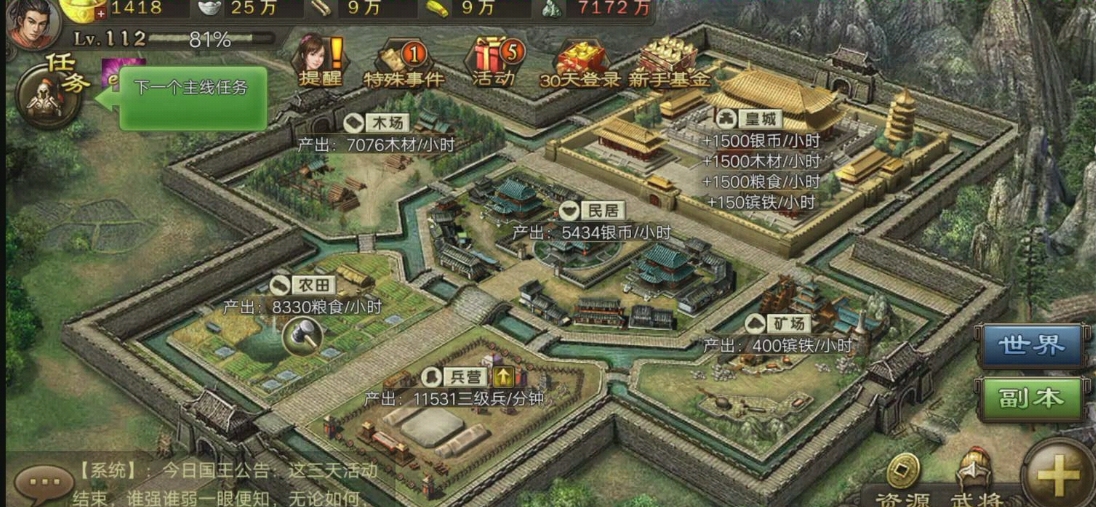 日常运营中,要根据战局与资源情况动态调整屯田练兵策略,避免资源失衡。和平发展阶段,主力武将优先开启苦练,快速提升核心战力,闲置武将可安排屯田,保障粮食供应。国战爆发前,全员切换屯田模式,集中储备足量粮食,满足战时征兵与补给需求。国战进行时,转为普通练兵,持续补充兵力与武将基础经验,维持前线作战能力。同时要合理规划屯田令与练兵令的使用,避免浪费,每日优先完成功勋任务获取足够令状,确保屯田练兵不间断,形成资源产出与武将成长的良性循环。