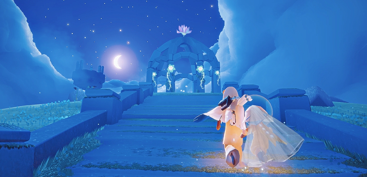 白鸟系列中最具代表性的白鸟斗篷,来自沉思编导先祖,仅在复刻期间出现,错过则需等待下一次返场。进入禁阁地图后,直走抵达一楼大厅,右侧有一扇四人门密室,需四名玩家同时做出推石头动作才能开启,单人可借助矮人面具遁地技巧进入。进入密室后找到先祖,触发运火任务,全程保持在光圈内护送火种,不可脱离范围,否则任务重置,完成后即可解锁兑换树,白鸟斗篷是兑换树中的核心物品,整体造型飘逸,飞行手感流畅,是追求白鸟的关键目标。