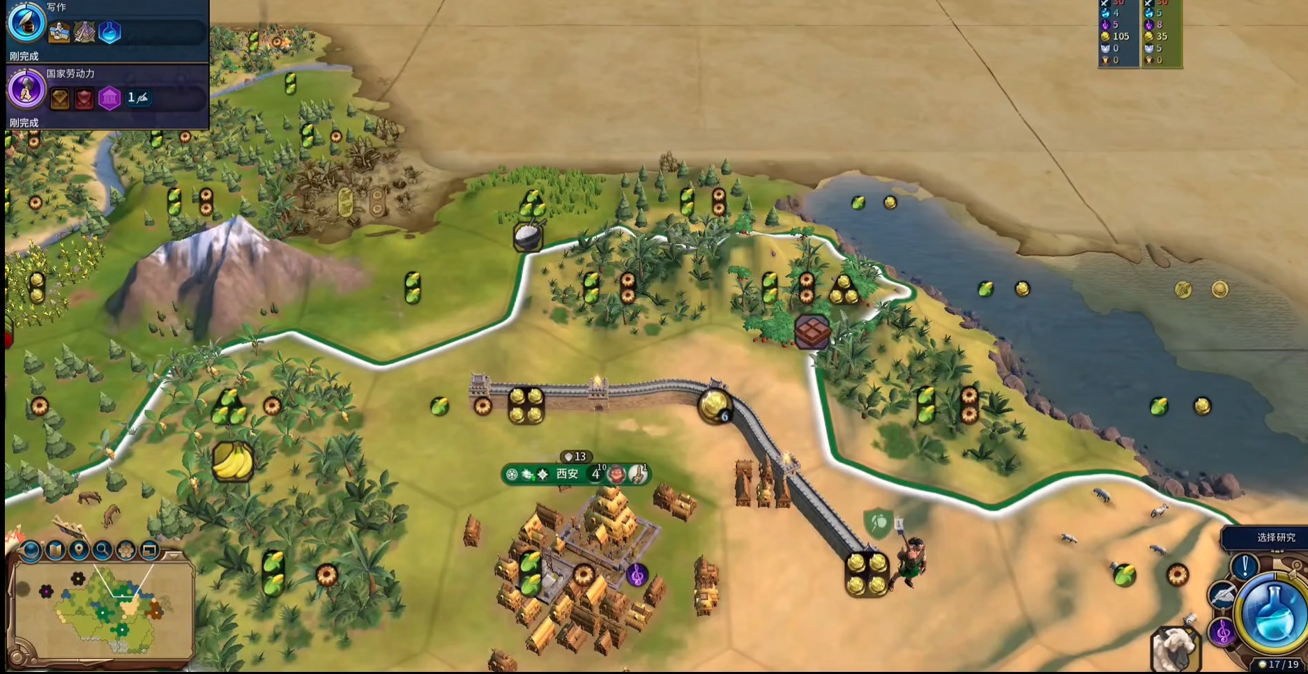 开局阶段的首要任务是选择合适的初始位置。理想情况下,首都应建立在资源丰富的区域,尤其是拥有石头、丘陵或高产食物资源的地块。石头是触发砌砖科技尤里卡的关键,而丘陵地形则能提供额外的生产力。侦察兵应优先派出以探索周边地形,寻找适合建造奇观的位置,例如沙漠平地(大金字塔)或靠近山脉的区域(神谕)。如果初始位置不理想,可以考虑在分城圈定关键资源地块。