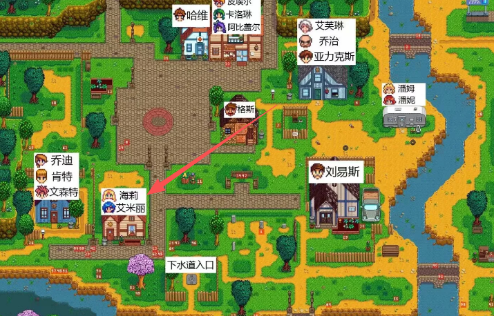 海莉的房间位于鹈鹕镇柳巷2号的住宅内,这是她与姐姐艾米丽共同居住的房屋。该住宅坐落在镇中心西南方向,具体位置在社区中心南侧的小路尽头,靠近一颗显眼的大树。房屋外观为淡黄色木质结构,带有蓝色屋顶,门前有小片花园区域,整体风格清新明亮。海莉的房间在住宅二楼,需要通过室内楼梯抵达,玩家与海莉好感度达到2颗心后会收到进入房间的邀请。